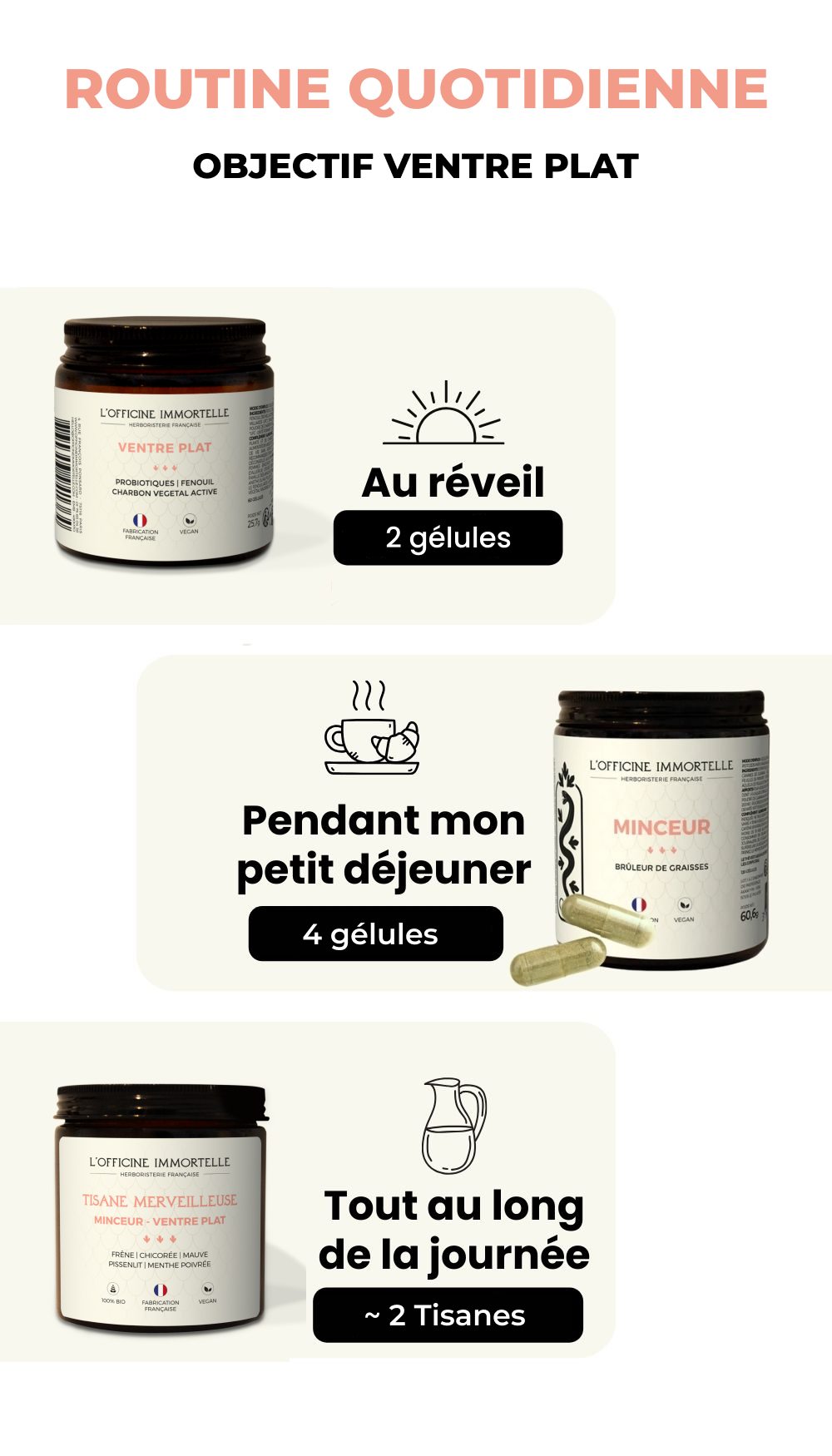 🌿Our Cure Flat Stomach Objective is a synergistic combination of three natural products to help you achieve your weight loss and digestive comfort goals. This treatment combines the benefits of slimming vitamins, a flat stomach complex and a wonderful herbal tea.
