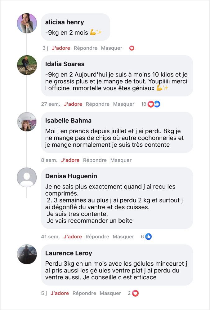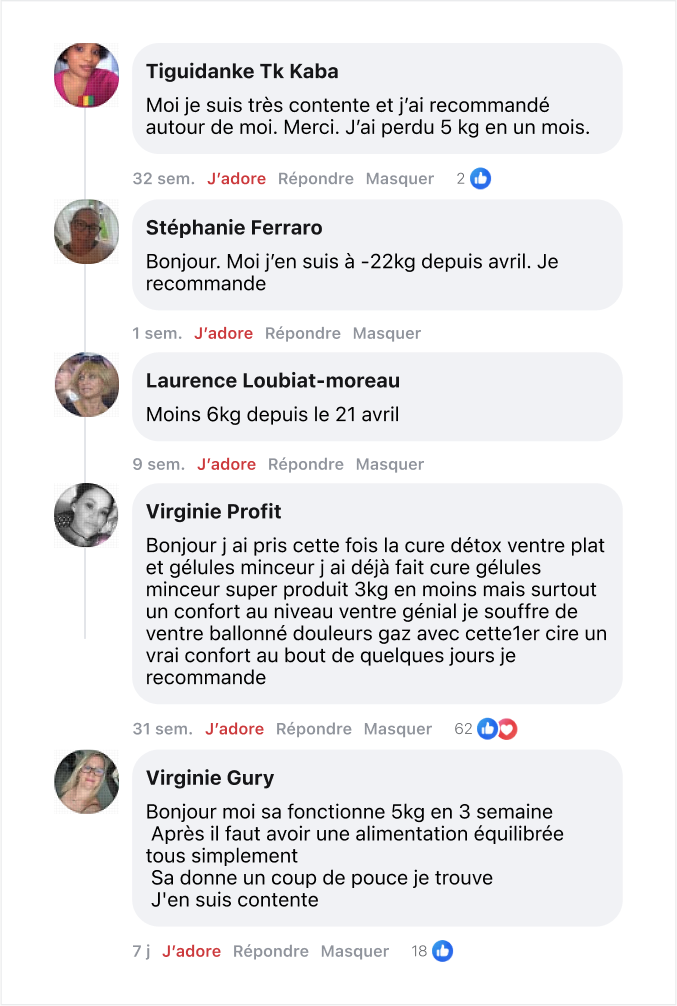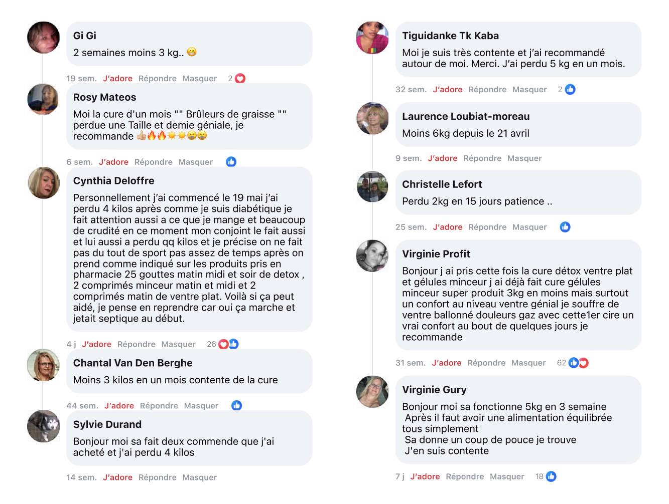 Très satisfaite des produits perdu peu de poids mais j aidégonflée