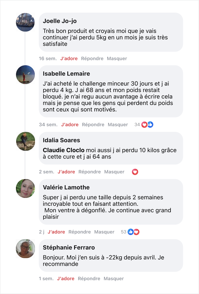 J ai déjà perdu 3 kg en un mois mille merci et je vais encore recommender pour 2 mois.