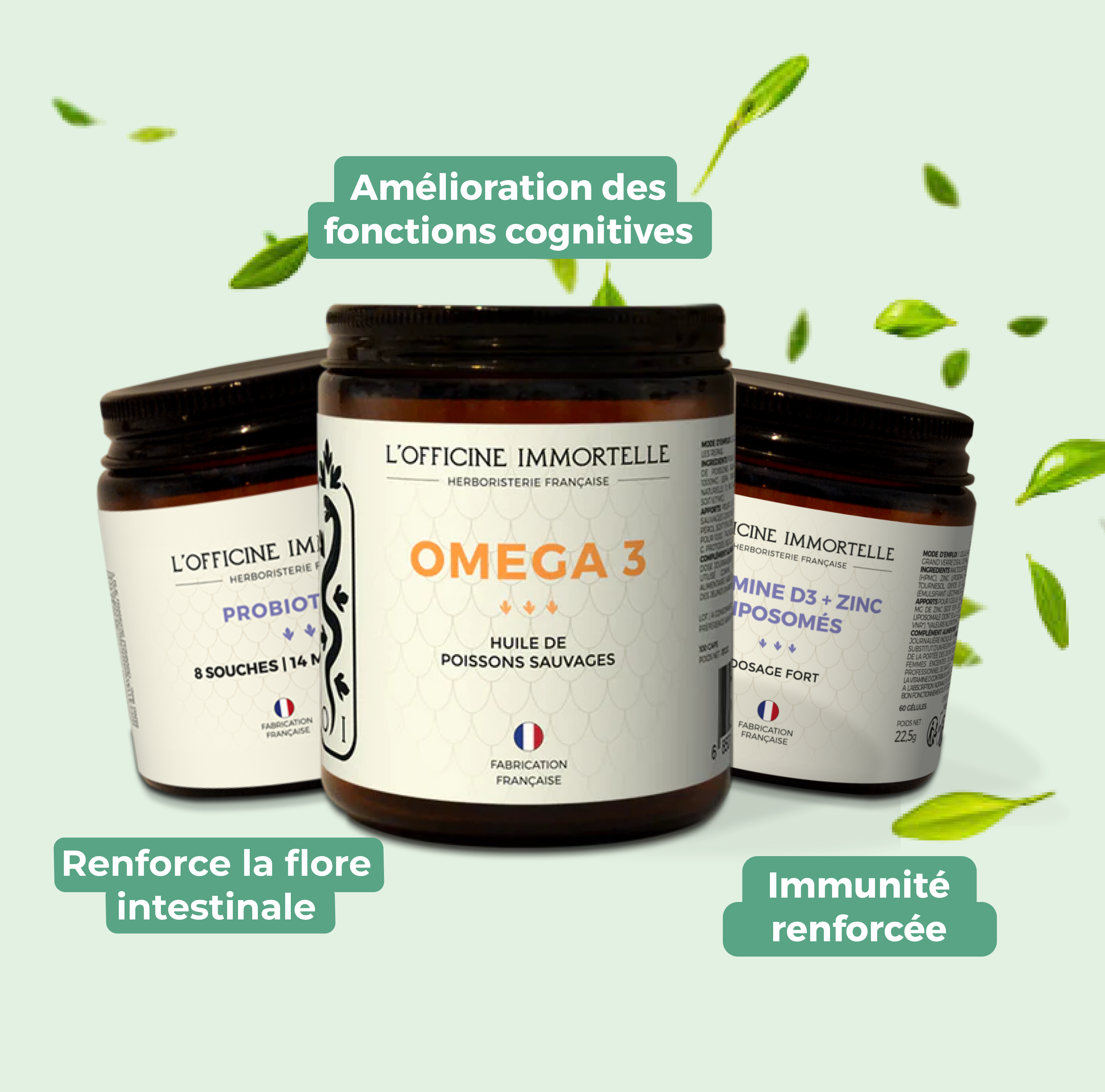 Notre formule associe lâaction complĂ©mentaire de probiotiques Ă large spectre, dâOmega3 et de vitamines D3 et zinc, soigneusement dosĂ©s et dâune qualitĂ© premium.